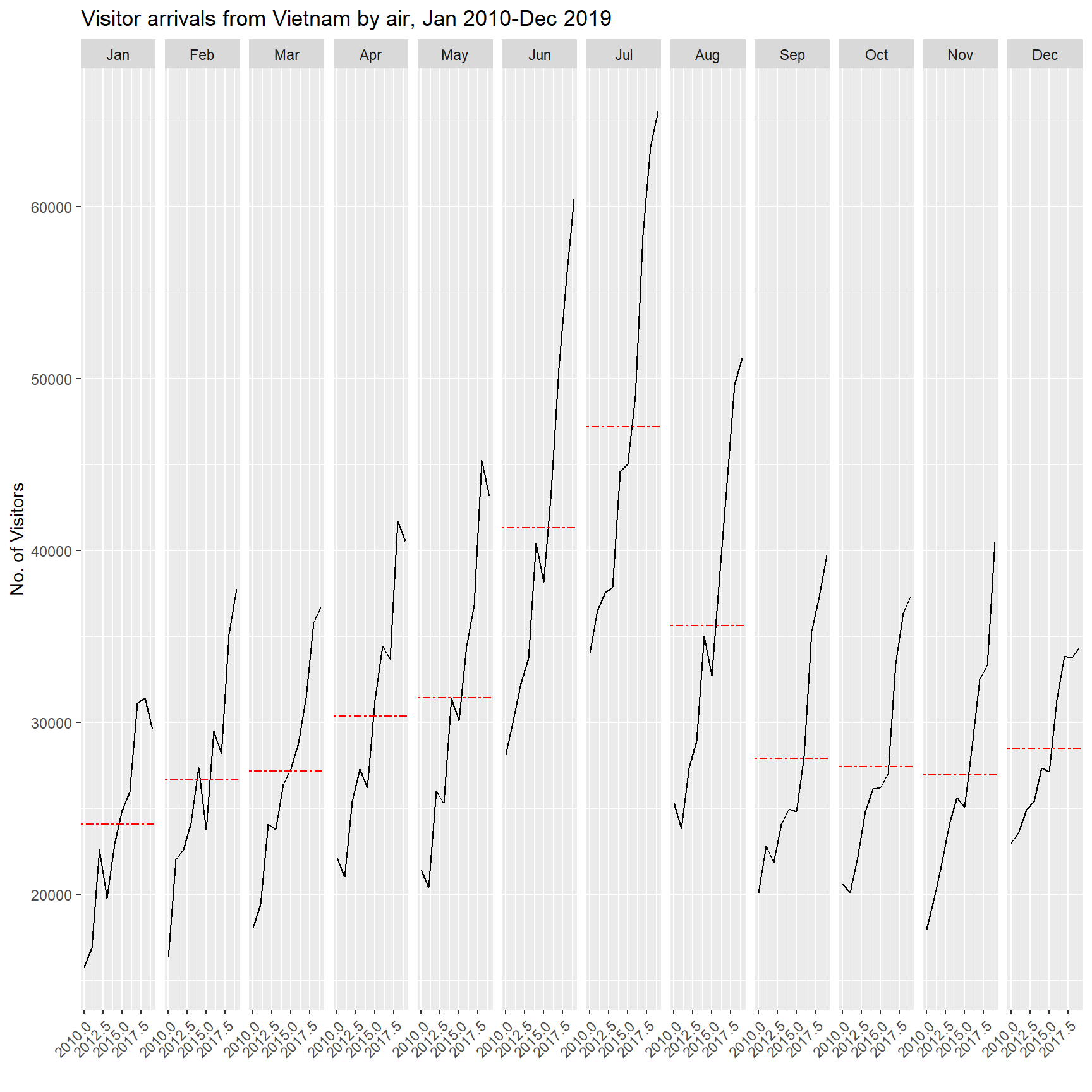 title = "Visitor arrivals from Vietnam by air, Jan 2010-Dec 2019") +