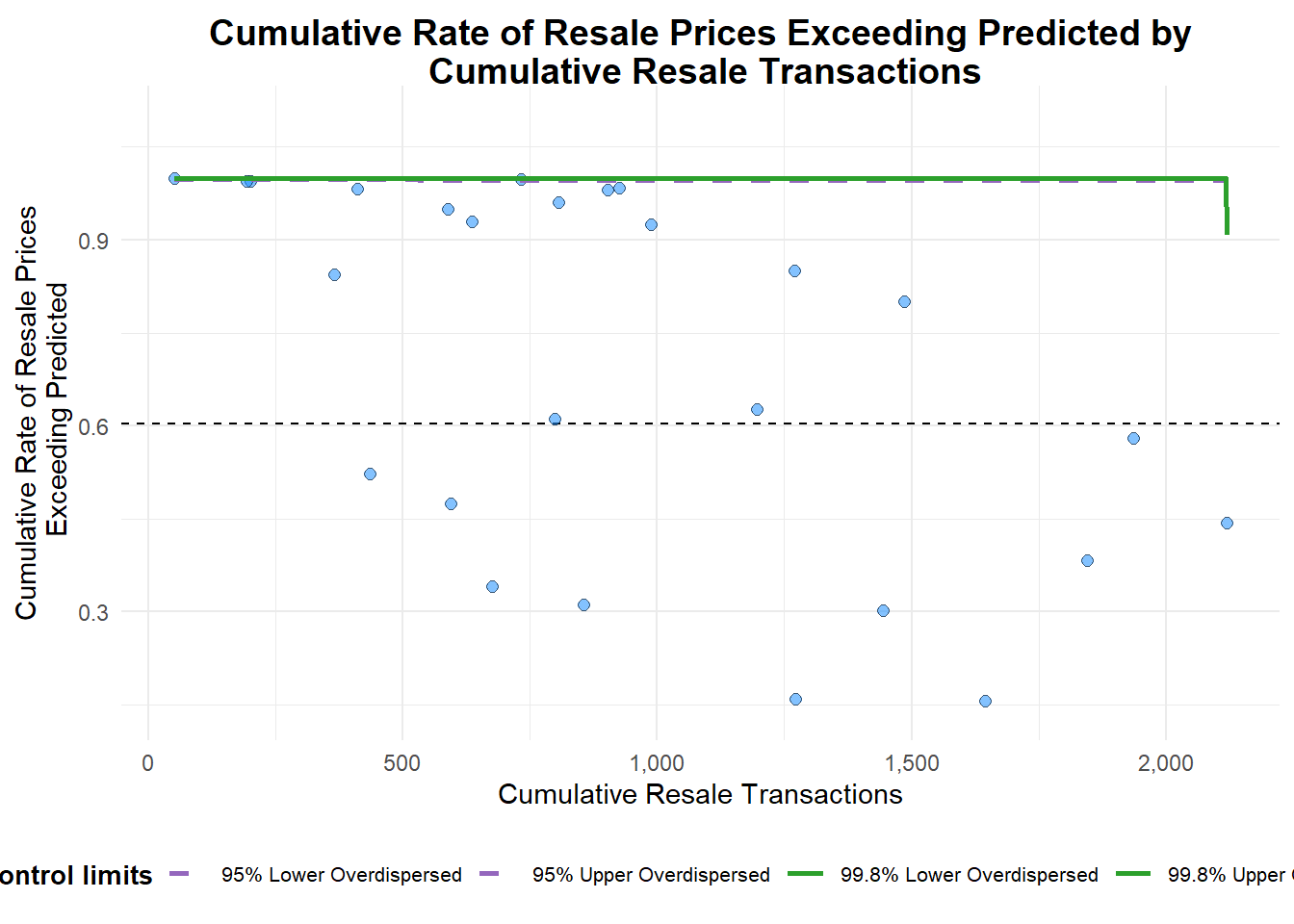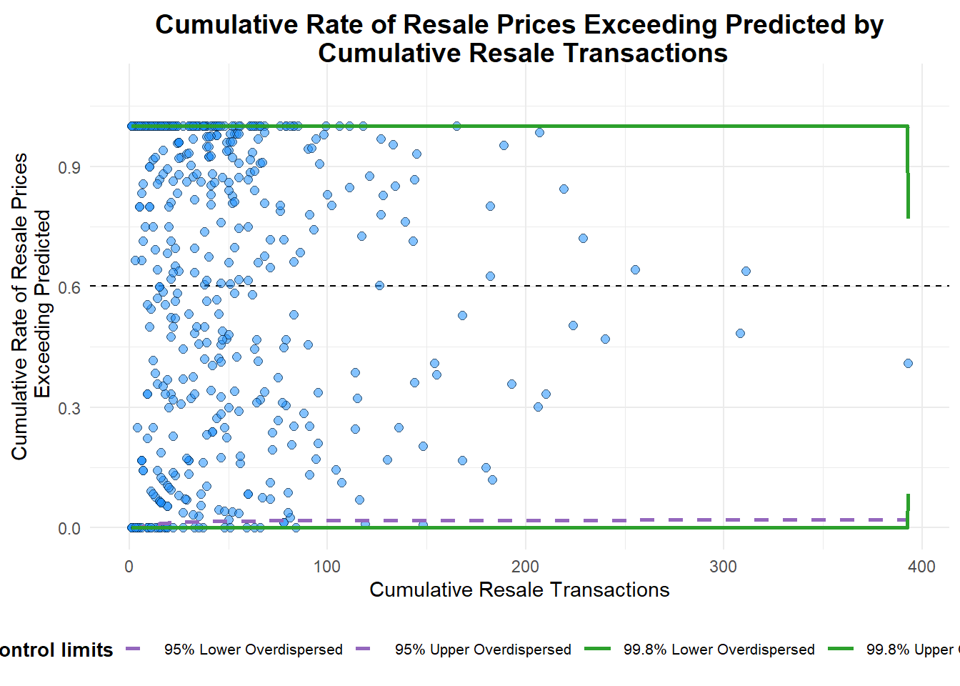title = "Cumulative Rate of Resale Prices Exceeding Predicted by\n Cumulative Resale Transactions",